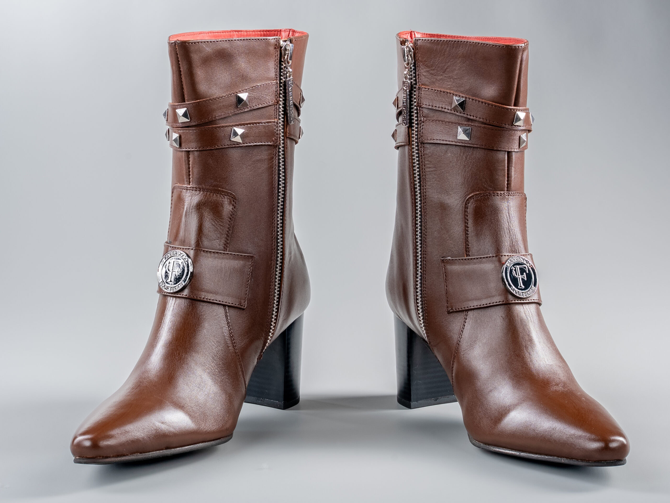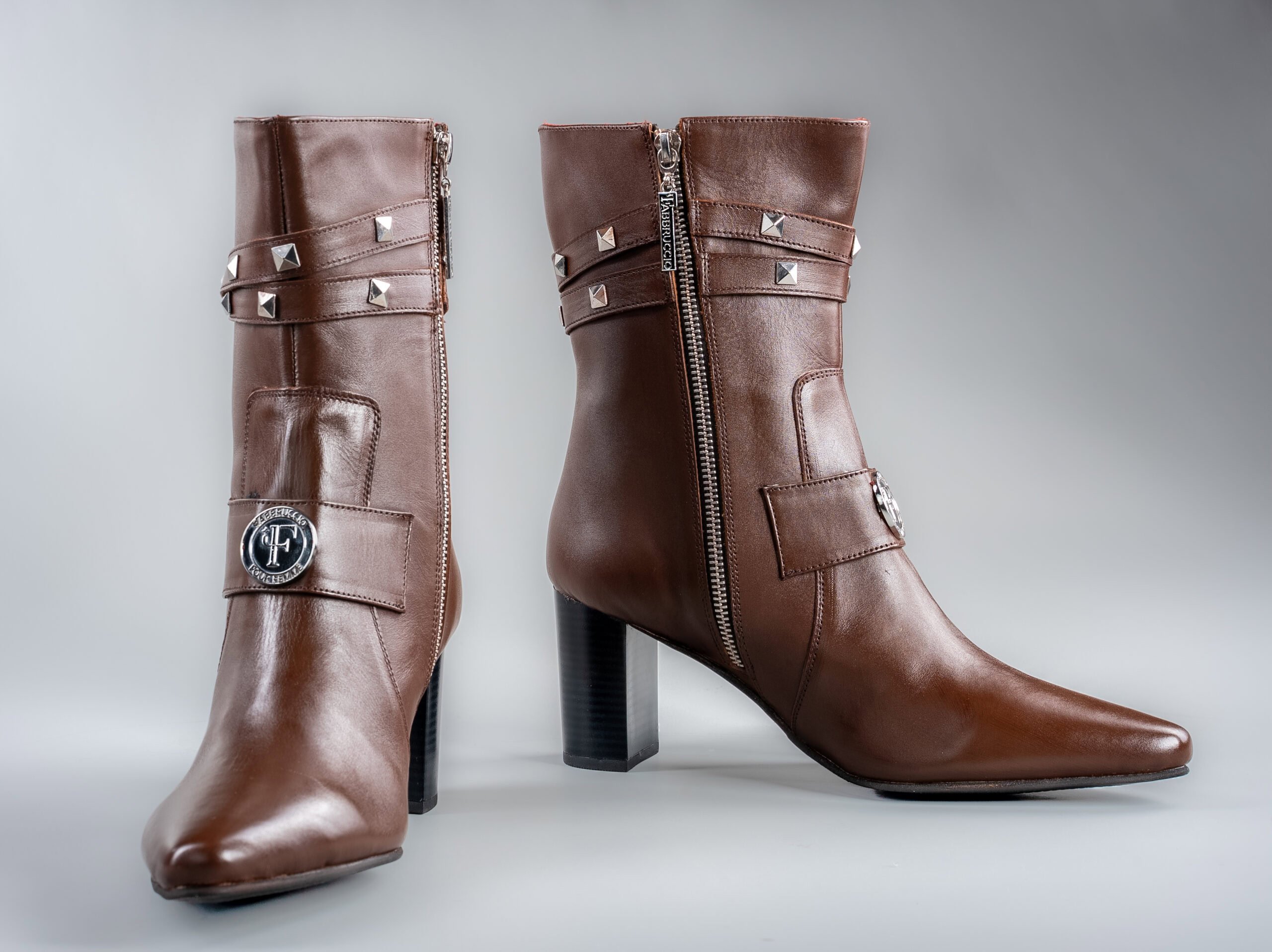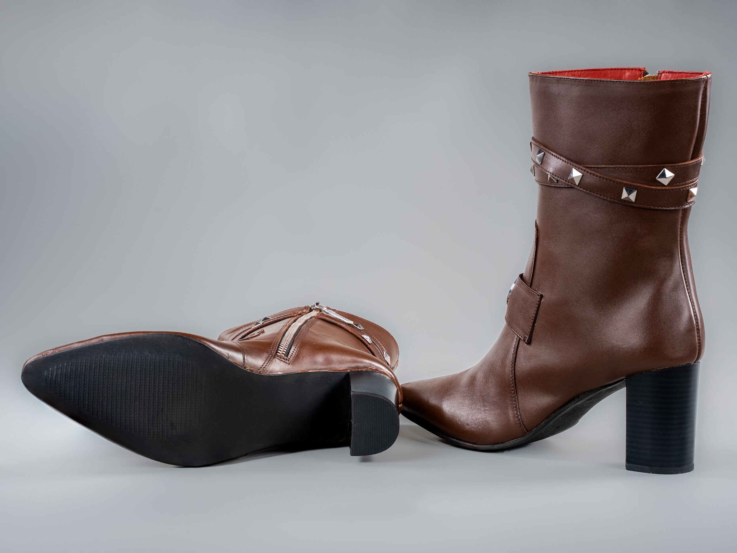 Silver pyramid studs with adjustable fit for various calf widths